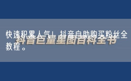 在抖音这个竞争激烈的平台上,快速积累人气是每个创作者的核心诉求。自助购买粉丝作为一种高效的涨粉方式,正被越来越多用户关注。本文将为您详细解析抖音自助购买粉丝的全流程,助您安全高效地提升账号影响力。