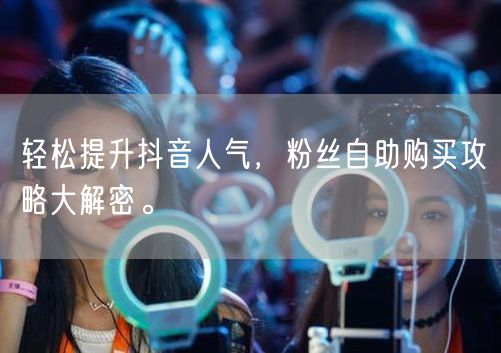 通过以上方法,你可以轻松提升抖音人气,实现粉丝快速增长。记住,内容质量与用户互动是根本,粉丝自助购买只是辅助手段。结合两者,你的抖音账号一定能脱颖而出!